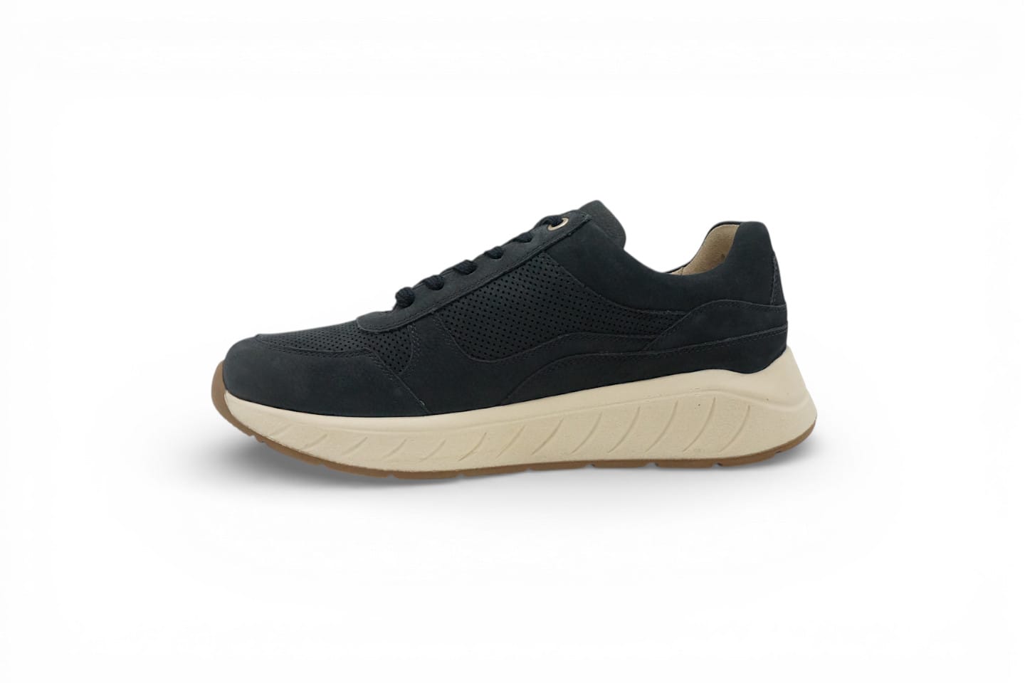 De comfortabele zool biedt goede demping en ondersteunt een natuurlijke afwikkeling van de voet. Het bovenwerk is zorgvuldig geselecteerd om prettig aan te sluiten zonder drukpunten, wat deze schoen geschikt maakt voor gevoelige of bredere voeten.